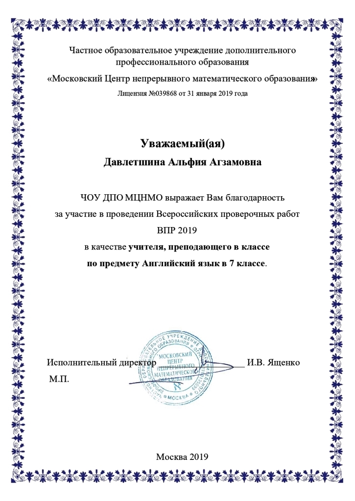 Давлетшина Альфия Агзамовна